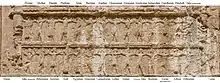 The nationalities mentioned in the DNa inscription are otherwise vividly illustrated through the large sculptural relief on the upper registers of all the tombs, including that of Darius I, at Naqsh-e Rustam.[4][5] One of the best preserved is that of Xerxes I.