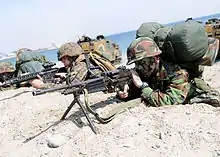 The Daewoo Precision Industries K3 is a South Korean light machine-gun. It is the third indigenous firearm developed in South Korea by the Agency for Defense Development, following the Daewoo Precision Industries K1 submachine gun and Daewoo Precision Industries K2 assault rifle. It is manufactured by Daewoo Precision Industries, current S&T Motiv.[1] The K3 is capable of firing both 5.56×45mm NATO and .223 Remington rounds like the K2 assault rifle. The K3 light machine gun entered service in 1989, replacing the M60 machine gun in frontline use.[2]