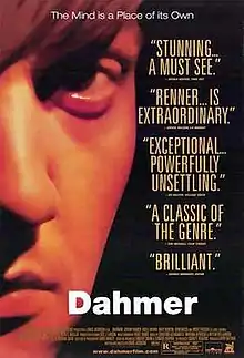 Dahmer is a 2002 American biographical true crime horror film directed by David Jacobson. It stars Jeremy Renner as Jeffrey Dahmer, a serial killer in Wisconsin. There are two timelines in the film. The "present" runs in ordinary chronological order covering the period of one-to-two days; the flashbacks are in reverse order, as Dahmer is seen as successively younger until the film arrives at his first murder and the aftermath.