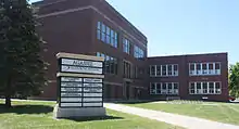 ![]() Agassiz Building, located in Fargo, ND, which houses Dakota High School; as seen from the north entrance to the building. | |