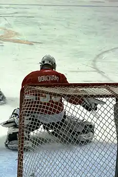 Bouchard played in the 1962 and 1963 Quebec International Pee-Wee Hockey Tournaments with his LaSalle youth team.[1] As a junior, Bouchard backstopped the Sorel Black Hawks to the 1969 Memorial Cup. Bouchard was drafted by the Boston Bruins in 1970, and after two years in the American Hockey League, made his NHL debut in 1972–73 after the Flames claimed him in the 1972 NHL Expansion Draft.[2] After eight seasons in Atlanta, the Flames franchise relocated to Calgary, Alberta in the summer of 1980. Halfway through the 1980–81 season, Bouchard was traded to the Quebec Nordiques for Jamie Hislop; at the time of the trade, Bouchard was the last original Atlanta Flames player still with the organization. He then led Quebec to their first playoff appearance since the 1979 NHL–WHA merger.