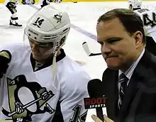 Dan Potash (born March 22, 1970) is a TV reporter for AT&T SportsNet Pittsburgh (formerly FSN Pittsburgh and Root Sports Pittsburgh). He covers both the Pittsburgh Penguins of the NHL and the Pittsburgh Pirates of the MLB. He joined the AT&T SportsNet Pittsburgh team in 2000. Prior to joining AT&T SportsNet Pittsburgh, he worked for three years as weekend sports reporter for WCIV-TV in Charleston, South Carolina. Before that, Dan served as the sports director at WDTV in Bridgeport, West Virginia. Dan started his sportscasting career in Southern California, where he was a production assistant for Prime Sports.[1] Potash is well known for an incident in 2008 when former Penguins player Georges Laraque kissed him during a report. On August 17, 2012, Potash confirmed on the ROOTSPORTSPIT Twitter account that he is now engaged to long-time girlfriend Heidi.[2]