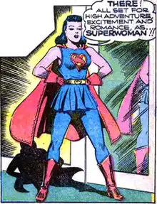 The first appearance of "Superwoman" in a DC comic is a story in Action Comics #60[3] by Jerry Siegel and George Roussos, where Lois Lane dreams that she has gained superpowers from a blood transfusion from Superman and launches a career as Superwoman.[4]