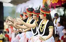 The Manipuri dance, in general, is a team performance, with its own unique costumes, aesthetics, conventions and repertoire.[5] Manipuri dance is a religious art and its aim is the expression of spiritual values. Aspects of this performance art is celebrated during festivals and major rites of passage such as weddings among the Manipuri people, particularly in the ethnic majority of Meitei people.[3] [6]