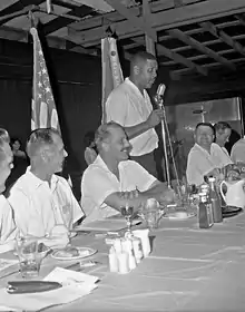 James met his wife Dorothy while he was at Tuskegee and they were married on the campus on November 3, 1942.[12] They had two sons and one daughter.[13] General James's son, Lieutenant General Daniel James III,[14] also served in the United States Air Force as a fighter pilot and in the Texas Air National Guard. He served from 1995 to 2002 as the Adjutant General of the Texas National Guard (the first African American to hold the post), and as Director of the Air National Guard from 2002 to 2006. In the summer of 2006, he retired from the Air Force at the rank of Lieutenant General after 38 years of total commissioned service, on active duty and as an Air Guardsman.