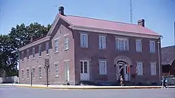 The building is located on the southwest corner of the Carrollton Public Square. It is a perfect example of the popular Federal architecture and was constructed in 1837. The central door is framed by white side windows and a fan window above. A light sandstone arch surmounts the frame. The hipped roof is framed on both sides by two large chimneys.