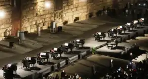 In 1998 the performance of the Two Symphonies for 21 pianos at the Uffizi Courtyard.[6]