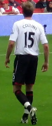 On 29 August it was reported that Sunderland had accepted a bid from Stoke City for Collins (despite this, he was an unused substitute when the two sides played each other the next day)[11] As expected, he signed for Stoke on 1 September for £2.75 million rising to £3.5 million.[12][13] Collins made his Stoke debut in a 2–1 defeat at home to Chelsea[14] in the following match against Bolton Wanderers Stoke were leading up until the 88th minute when Collins fouled Sam Ricketts in the penalty area costing Stoke three points.[15] Collins struggled to establish himself at left back during the 2009–10 season often rotating with Danny Higginbotham.[16]