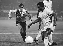 Thomas (right) and Johan Cruyff, Feyenoord vs Tottenham during the 1983–84 UEFA Cup competition