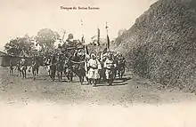 In the late 1860s or early 1870s, a respected trader and faqih named Kobur was made governor of Dar al-Kuti (according to some sources he was the son of Djougoultoum).[6] His wealth and power probably derived from the ivory trade. While he was governor, groups of Wadai horsemen would appear in Dar al-Kuti from time to time to gather tribute and collect slaves from the regions of the Nduka and Banda peoples, which bordered on Kobur's domain. Kobur was careful to maintain good relations both with the larger Muslim realms to the north, as well as with his non-Muslim neighbours, the Nduka. Dar al-Kuti took part in the slave trade to a limited extent, but large-scale raids did not take place in the time of Kobur.[5]