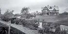 Daresbury was designed by Samuel Hurst Seager for the wine and spirits merchant George Humphreys. It was built between 1897 and 1901.[1] It is regarded as Seager's best large house.[2] Originally, the house was set on 10 hectares (100,000 m2), with the land having been subdivided off the Deans family.[1] It was initially added to until 1910,[1] when it had 50 rooms and five live-in staff.[3][4]