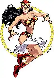 Darna (Tagalog pronunciation: [daɾna]) is a Filipino superheroine created by writer Mars Ravelo and artist Nestor Redondo. The character's first appearance was in Pilipino Komiks (Ace Publications, Inc.) #77 on May 13, 1950.[2] Darna is a retooling of Ravelo's earlier character, Varga, whose stories he wrote and illustrated himself. This character first appeared in Bulaklak Magazine, Volume 4, #17 on July 23, 1947. Ravelo left the Bulaklak Magazine publications due to differences with the publication's editors.[3] One of the most popular Filipino superheroes, Darna has appeared in many films and several television series through the decades which have far overshadowed her actual comics tenure.