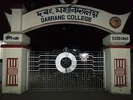 Darrang College, sometimes referred to at times as the Nalanda of the North Bank, is a college in Tezpur, Assam, India. It was started in July 1945 with 8 teachers and 112 students in the roll.It was permanently affiliated to Gauhati University in 1953. Darrang College offers bachelor's degrees in Arts, Commerce & Science from Gauhati University. Currently the college runs with 24 departments.