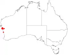 The Murchison Darwinia occurs in the Swan Coastal Plain and Geraldton Sandplains biogeographic regions of Western Australia growing in white or yellow sand in heath.[7]