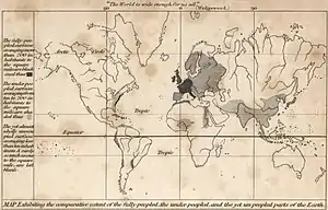 The earliest maps using this kind of approach include an 1833 map of world population density by George Julius Poulett Scrope[4] and an 1838 map of population density in Ireland by Henry Drury Harness, although the methods used to create these maps were never documented.[5][6]