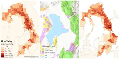 Beyond Russia, the technique was popularized in the 1930s by J.K. Wright, who has sometimes been incorrectly credited with its invention.[9] Waldo R. Tobler introduced one of the first computer algorithms for dasymetric mapping, which he called pycnophylactic interpolation (from Greek πυκνός puknós 'dense, compact' and φυλάττω phylátto 'to guard, preserve'); apparently unaware of the earlier work; he only cites literature on pure isarithmic mapping.[10] Since then, most other methods have used computation algorithms or GIS software to construct a dasymetric map.