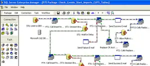 Each connection and task in DTS Designer is shown with a specific icon. These icons are joined with precedence constraints, which specify the order and requirements for tasks to be run. One task may run, for instance, only if another task succeeds (or fails). Other tasks may run concurrently.