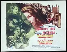 Daughter of Darkness is a 1948 British film, with macabre overtones, directed by Lance Comfort and starring Anne Crawford, Maxwell Reed and – in the central role – Siobhán McKenna. Released in January 1948, it was based on a then ten-year-old play by Max Catto called They Walk Alone.[1] An expensive film for its day, it was shot at Riverside Studios, Hammersmith, London, (known at that time as Alliance Studios) and on location.[2][3] McKenna was offered a Hollywood contract following her memorable performance, but heeded the counsel of Laurence Olivier to remain in theatre work.[4]