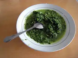 ![]() Daun ubi tumbuk in Batak cuisine | |