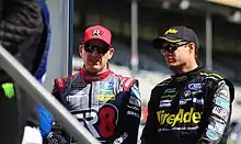 On January 19, 2016, it was announced that Ragan would drive the No. 23 Dr. Pepper Toyota Camry for BK Racing.[19] The No. 23 team struggled mightily, as the team's engines did not have enough speed to be competitive every week. Ragan's best result with the BK team in 2016 was a 16th-place finish at the Coke Zero 400. During late summer, Ragan was thrown into the spotlight after Chris Buescher, driving Ragan's old No. 34 at FRM, won at Pocono while trailing Ragan for 30th in points. The battle between Buescher and Ragan for 30th (and therefore Chase eligibility for Buescher) became a focal point of the lead-up to the Chase. Buescher ended up qualifying for the Chase, while Ragan dropped several spots to finish 33rd overall in Sprint Cup points, a career-worst, and marking his first season without at least one Top 10 finish. Ragan parted ways with BK Racing after the season.[20]