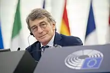 In the 2019 European Parliament election in Italy, Sassoli was re-elected to the European Parliament, with 128,533 votes.[20] On 2 July 2019, he was proposed by the Progressive Alliance of Socialists and Democrats (S&D) as the new president of the European Parliament.[21] On the following day, Sassoli was elected president by the assembly with 345 votes in favor, succeeding Antonio Tajani.[22] He became the seventh Italian to hold the office.[23]