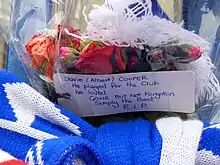 The news of Cooper's death was met with widespread sadness from across the country and the footballing world, much of which is still felt today. Supporters of Clydebank, Rangers and Motherwell left tributes outside their respective grounds.[81] Jock Wallace Jr. (who had signed Cooper for Rangers in 1977) said: "My feelings go out to his family and loved ones, who will have to be strong through this ordeal." The (then) Scottish Football Association chief executive Jim Farry stated: "It is tragic that one with such skills and knowledge will no longer be able to impart them to young players."[86]