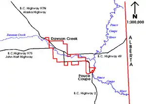 ![]() Dawson Creek Location of Dawson Creek ![]() Dawson Creek Dawson Creek (Canada) | |