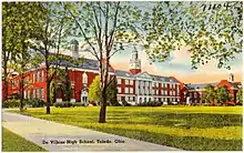Thomas A. DeVilbiss High School was a public high school in Toledo, Ohio from 1931 to June 1991. It was part of the Toledo Public School District, serving students from the DeVeaux, Elmhurst, Grove Patterson, Longfellow, Mayfair, McKinley, Nathan Hale, Old Orchard, and Whittier elementary schools. The building still sits at 3301 Upton Avenue near the Central Avenue intersection.