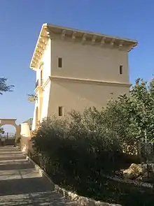 Another structure whose design was also similar to the De Redin towers was the Falkun Tower (Maltese: Torri Falkun), located at the Montekristo Estates in Ħal Farruġ, limits of Siġġiewi. This tower, along with other parts of Montekristo Estates, was constructed illegally without the necessary permits.[12] It was supposed to have been demolished in November 2013, but the courts stopped the planning authority MEPA from carrying out the demolition.[13] Since the failed attempt at demolishing the tower and the other illegal structures, new roofing works were carried out on the tower,[14] while more illegal structures were constructed elsewhere in Montekristo Estates.[15] The tower began to be dismantled according to MEPA orders in April 2016.[16] Another tower was built in 2016 in Gozo as a rural structure, similar to the coastal towers but located inland.[17]