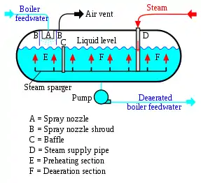 - The spray-type consists only of a horizontal (or vertical) cylindrical vessel which serves as both the deaeration section, and a storage tank for boiler feedwater.