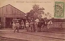 The 600 mm (1 ft 11+5⁄8 in) gauge Decauville railway was built in 1900 from Antsirane (now Antsiranana) to the Tunisian Fountain (Fontaine Tunisienne) at today's STAR factory.[1] It started at the port and ran on the Rue Gouraud and the Boulevard Bazeilles up to the Cercle Français (now Suarez Art) and up the Boulevard Militaire. It turned into the Boulevard de Sakaramy at the height of Camp Lubert, from where it led past the present town hall to l'Octroi and the Tunisian Fountain. At the end of 1900, it was extended from the Tunisian Fountain via Antanamitara and Andranomanitra to the junction of today's road to Joffreville.[2][1]