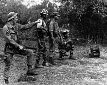 As the Vietnam War began to loom on the horizon, both South Vietnamese and American policy makers sought to begin training troops from minority groups in the Vietnamese populace. The U.S. Mission to Saigon sponsored the training of the Montagnard in unconventional warfare by American Special Forces.[4] These newly trained Montagnard were seen as a potential ally in the Central Highlands area to stop Viet Cong activity in the region and a means of preventing further spread of Viet Cong sympathy.[5] Later, their participation would become much more important as the Ho Chi Minh trail, the North Vietnamese supply line for Viet Cong forces in the south, grew. The U.S. military, particularly the Special Forces, developed base camps in the area and recruited the Montagnard. The Montagnard were valued allies with their resolve, skills in tracking, and knowledge of the region; roughly 40,000 fought alongside American soldiers and became a major part of the U.S. military effort in the Highlands and I Corps, the northernmost region of South Vietnam.[6]