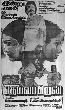 Deivapiravi (transl. Noble Soul) is a 1985 Indian Tamil-language romantic drama film directed by R. Krishnamoorthy and starring Mohan, Raadhika, and Urvashi.[1] The film was a remake of the Telugu film Devatha (1982).[2] It was released on 14 April 1985 and ran for one-hundred days in theatres.