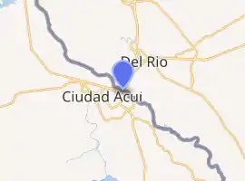 The Del Río-Ciudad Acuña International Bridge is an international bridge which crosses the Rio Grande connecting the United States-Mexico border cities of Del Rio, Texas and Ciudad Acuña. The bridge is also known as "Del Río International Bridge", "Puente Acuña" and "Puente Ciudad Acuña-Ciudad Del Río".[1]