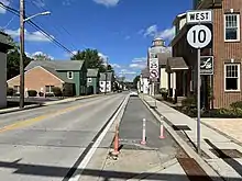 The road was constructed as a state highway between Woodside and Rising Sun in 1931 and between Willow Grove and Woodside the following year.[25][26] DE 10 Alt. was designated by 1988 onto its current alignment.[23] Prior to 2004, the South State Street portion of DE 10 Alt. was concurrent with US 113 Alt., which was decommissioned when US 113 was truncated from Dover to Milford.[17][18]