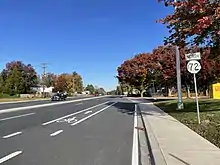 DE 72 was extended to its present southern terminus at DE 9 the next year, following Chapel Street, Sunset Lake Road, and Wrangle Hill Road.[18] In 1980, the Chapel Street grade crossing of the Northeast Corridor rail line in Newark was removed, and DE 72 was realigned farther to the east to follow Library Avenue across the railroad tracks before continuing north on DE 2 and Possum Park Road to Paper Mill Road in Milford Crossroads.[19] DE 2 was realigned to follow DE 72 around the eastern part of Newark on Library Avenue by 1990.[20] In 2013, the DE 2 concurrency between DE 4 and DE 273 was removed due to the truncation of DE 2 to the DE 273 intersection.[21] On April 29, 2016, Governor Jack Markell, DelDOT secretary Jennifer Cohan, and local officials attended a groundbreaking ceremony for a $7 million project that rebuilt the interchange with DE 1 into a diverging diamond interchange, the first such interchange in Delaware.[22] The diverging diamond interchange configuration was put into place on November 19, 2016.[23]