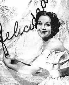 That same year, Garcés formed her own theatrical company and in March premiered the first play of Homero Manzi and Ulises Petit de Murat, La novia de arena, at the Odeón Theater. In her troupe, besides herself were: Alba Castellanos, Orestes Caviglia, Margarita Corona, Enrique Alvarez Diosdado, Alita Román, Domingo Sapelli, and Milagros de la Vega.[18] Having completed a run of the play, her company continued at the Odeón and performed her "farewell" theatrical production in Argentina, Claudia by Rose Franken. After the performance, due to the political situation with Juan Peron's government, she and her husband planned to leave Argentina.[19] But, they stayed and in 1946, she performed La eterna ninfa at the Odeón[20] and filmed Rosa de América directed by her husband with Orestes Caviglia, Antonia Herrero, Elsa O’Connor, among others.[21] She earned praise for her roles in El gran amor de Bécquer (1946) and El hombre que amé (1947)[11] and in 1948, she performed in the play El otro yo de Marcela which was so successful that it led to a film by the same name two years later,[20] in which she sang and danced.[11]