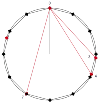 The δ (delta) scale is a non-octave repeating musical scale. It may be regarded as the beta scale's reciprocal, since it is "as far 'down' the (0 3 6 9) circle from α as β is 'up'".[1] As such it would split the minor second (presumably 16:15) into eight equal parts of approximately 14 cents each  Play . This would total approximately 85.7 steps per octave.