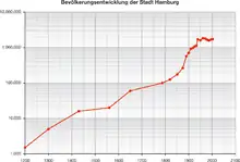 On December 31, 2006 there were 1,754,182 registered people living in Hamburg (up from 1,652,363 in 1990). The population density was 2,322/km2 (6,010/sq mi).[1]