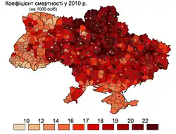 - Общий коэффициент смертности (на 1000 населения): Украина: 1950–2013 [Crude death rate (per 1,000 people): Ukraine: 1950–2013]. Demoscope Weekly (in Russian). Archived from the original on 21 March 2016. Retrieved 22 April 2016.
