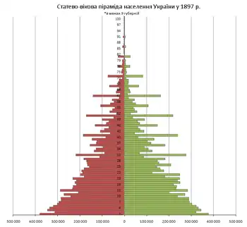 The figures below refer to the nine governorates of the Russian Empire (Volhynia, Yekaterinoslav, Kiev, Podolia, Poltava, Taurida, Kharkov, Kherson and Chernigov) with a Ukrainian majority.[39]