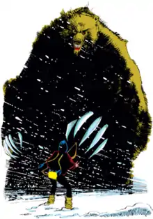 ![]() The Demon Bear facing Danielle Moonstar in a panel from The New Mutants Vol. 1 #18 (Aug. 1984). Art by Bill Sienkiewicz | |