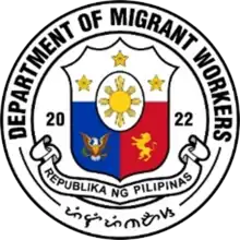 The Department of Migrant Workers (DMW) is the executive department of the Philippine government responsible for the protection of the rights and promote the welfare of Overseas Filipino Workers (OFW) and their families. The department was created under the "Department of Migrant Workers Act" (Republic Act No. 11641) that was signed by President Rodrigo Duterte on December 30, 2021.[3] The functions and mandate of the Philippine Overseas Employment Administration (POEA) will serve as the backbone of the department and absorbing the seven offices of the Department of Labor and Employment (DOLE) and Department of Foreign Affairs (DFA) namely the Office of the Undersecretary for Migrant Workers' Affairs (OUMWA) of the DFA, Philippine Overseas Labor Office (POLO), International Labor Affairs Bureau (ILAB), National Reintegration Center for OFWs (NRCO) and the National Maritime Polytechnic (NMP) of the DOLE. The Overseas Workers Welfare Administration (from DOLE) will serve as its attached agency and the DMW Secretary will serve as the concurrent Chairperson of OWWA.