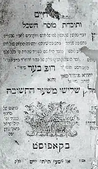 Derech Chaim was originally published in Kapust, in 1819, during the lifetime of Rabbi Dovber.[3][13] The work was later reprinted a number of times by the central Chabad publishing house, Kehot Publication Society,[14] beginning in 1947.[1]