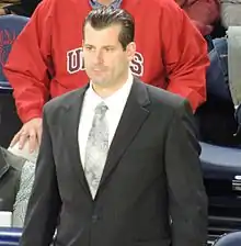 Derek William Kellogg (born June 20, 1973) is an American college basketball coach, currently the head men's basketball coach at Long Island University (LIU). Kellogg first arrived at the university in 2017, when he was named head coach of the LIU Brooklyn Blackbirds, which represented the school's Brooklyn campus.[1] He was named head coach of the current LIU team upon its formation in July 2019 when LIU merged the Brooklyn athletic program with that of its Post campus, creating a new program that now competes as the LIU Sharks. Before arriving at LIU Brooklyn, Kellogg was head coach of the men's basketball team at his alma mater, the University of Massachusetts,[2] being named to the position on April 23, 2008, replacing Travis Ford, who left to take the head coaching job at Oklahoma State University. He was removed from the position on March 9, 2017.[3]