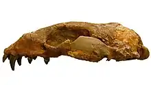 Desmatophoca is an extinct genus of early pinniped that lived during the Miocene, and is named from the Greek "phoca", meaning seal. A taxon of the family Desmatophocidae, it shares some morphological similarities with modern true seals.[1] Two species are recognized: Desmatophoca oregonensis and Desmatophoca brachycephala[2]. Little information exists regarding Desmatophoca, due to the small number of fossil samples obtained and identified.