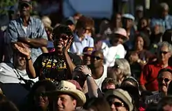 A crowd cheers The Blind Boys of Alabama performing on the Campus Martius stage at the Detroit International Jazz Festival in September 2005.