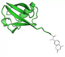 DUBs also cleave single ubiquitin proteins that may have had their C-terminal tails accidentally bound to small cellular nucleophiles.[2] These ubiquitin-amides and ubiquitin-thioesters may be formed during standard ubiquitination reactions by the E1-E2-E3 cascade. Glutathione and polyamines are two nucleophiles that might attack the thiolester bond between ubiquitin and these enzymes. Ubiquitin C-terminal hydrolase is an example of the DUB that hydrolyses these bonds with broad specificity.[13][16]