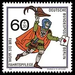 The first stamps were issued as "Deutsche Post", in 1952 the inscription was changed to "Deutsche Post Berlin", and three years later to "Deutsche Bundespost Berlin".[8] Many stamps had the same appearance as the stamps of the Federal Republic of Germany with just the inscription changed, while others were distinctly different.