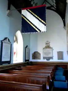 - Arms as visible on monument (transcript Chope, R. Pearse, The Book of Hartland, Torquay, 1940, p. 144) in Hartland Church to John Velly (1617-1694), during the Civil War a Captain-Lieutenant to Sir Robert Cary (1610–1675), lord of the nearby manor of Clovelly, a Gentleman of the Privy Chamber to King Charles II, whose mural monument survives in Clovelly Church